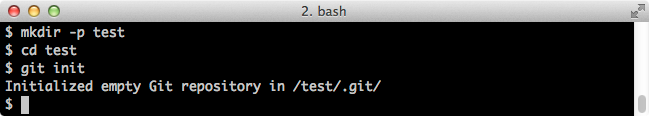 $ mkdir test $ cd test $ git initA screenshot: